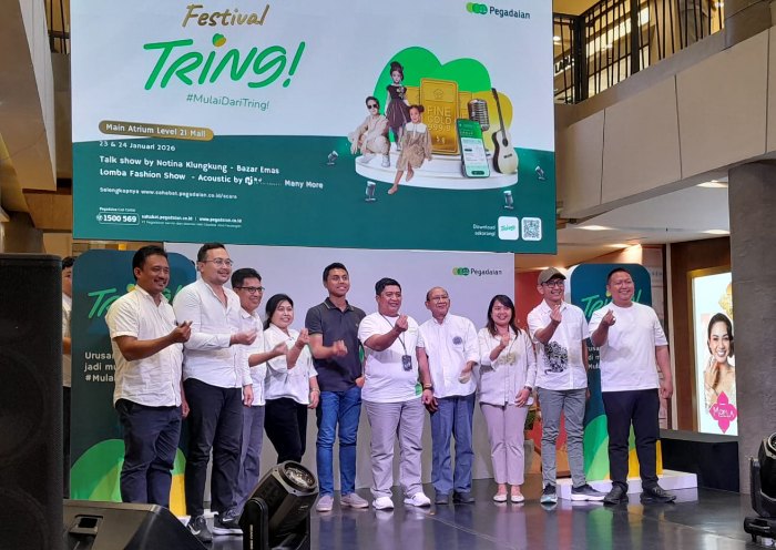(WARTADEWATA.COM) DENPASAR — PT. Pegadaian Kantor Area Denpasar 1 menggelar Festival Tring! yang berlangsung dari 23 hingga 24 Januari 2026, di Main Atrium Level 21 Mall, Denpasar. Pembukaan festival yang dimeriahkan dengan Talk Show by Notina Klungkung, Bazar Lelang Emas, UMKM, Lomba Fashion Show ini, dibuka secara resmi oleh Deputy Bisnis Kantor Area Denpasar 1, Kusumo Seno Aji, pada Jumat (23/1/2026).