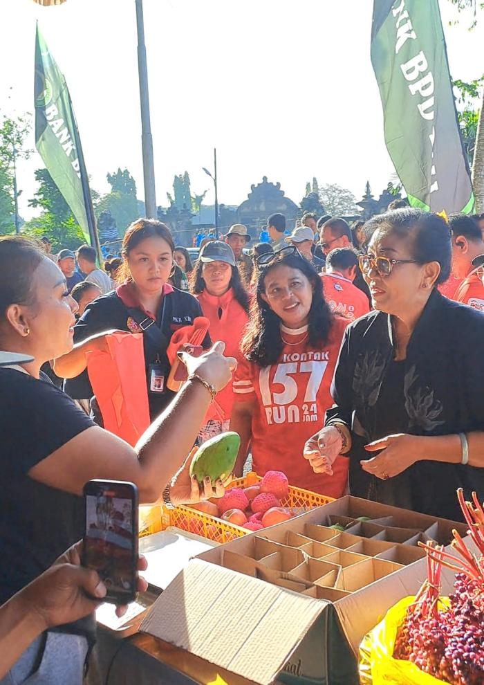 (WARTADEWATA.COM) DENPASAR - Dalam rangka menyambut Hari Raya Galungan dan Kuningan OJK Provinsi Bali, Pemerintah Provinsi Bali, dan FKLJK Provinsi Bali pada Minggu (16/11/2025) di depan Kantor Gubernur Bali, Lapangan Niti Mandala Renon, Denpasar menggelar pekenan Galungan–Kuningan. Gelaran ini menghadirkan UMKM yang berjualan berbagai kebutuhan untuk Hari Raya Galungan dan Kuningan. Acara ini juga dirangkaikan dengan kegiatan olahraga FUN RUN 157 OJK sebagai bentuk edukasi dan sosialisasi kontak layanan masyarakat dan konsumen OJK 157. Para peserta membentuk formasi angka 157 sebelum dilepas oleh Gubernur Bali Wayan Koster, Ketua Dekranasda Provinsi Bali didampingi Kepala Otoritas Jasa Keuangan (OJK) Provinsi Bali Kristrianti Puji Rahayu dan Ketua Forum Komunikasi Lembaga Jasa Keuangan (FKLJK) Bali I Nyoman Sudharma, serta pimpinan Lembaga Jasa Keuangan di Provinsi Bali.