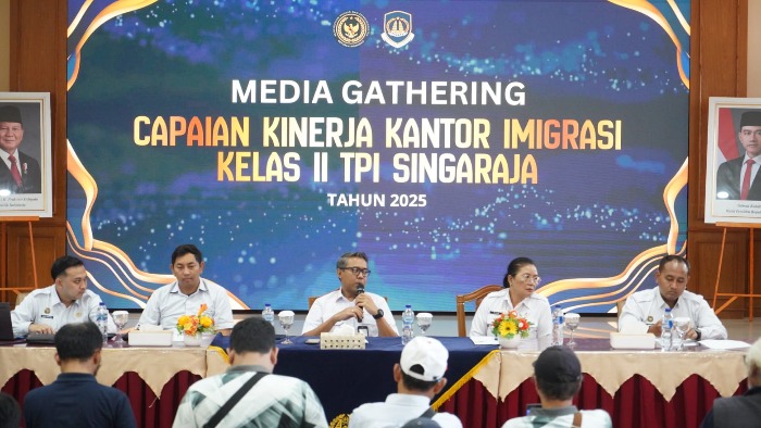 Kepala Kantor Imigrasi Kelas II TPI Singaraja, Anak Agung Gde Kusuma Putra, didampingi jajaran struktural Kantor Imigrasi Singaraja menjelaskan bahwa sepanjang tahun 2025, Kantor Imigrasi Singaraja mencatat peningkatan signifikan dalam pelayanan keimigrasian, baik bagi Warga Negara Indonesia maupun Warga Negara Asing. Jumlah penerbitan paspor sepanjang tahun 2025 mencapai 13.473 paspor, terdiri dari 9.624 paspor baru dan 3.849 paspor penggantian. Selain itu, layanan izin tinggal juga menunjukkan angka tinggi dengan total 7.281 dokumen. Rinciannya meliputi 9.960 Visa on Arrival, 2.666 Izin Tinggal Kunjungan, 558 Izin Tinggal Terbatas, dan 97 Izin Tinggal Tetap, jelas Kusuma Putra.