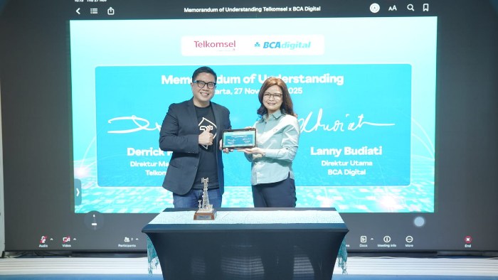 (WARTADEWATA.COM) JAKARTA – BCA Digital dan Telkomsel memulai kemitraan strategis jangka panjang untuk memperkuat ekosistem digital yang terintegrasi. Komitmen ini ditandai dengan penandatanganan Nota Kesepahaman (MoU) antara Direktur Utama BCA Digital, Lanny Budiati dan Marketing Director Telkomsel, Derrick Heng, pada Kamis (27/11/2025).